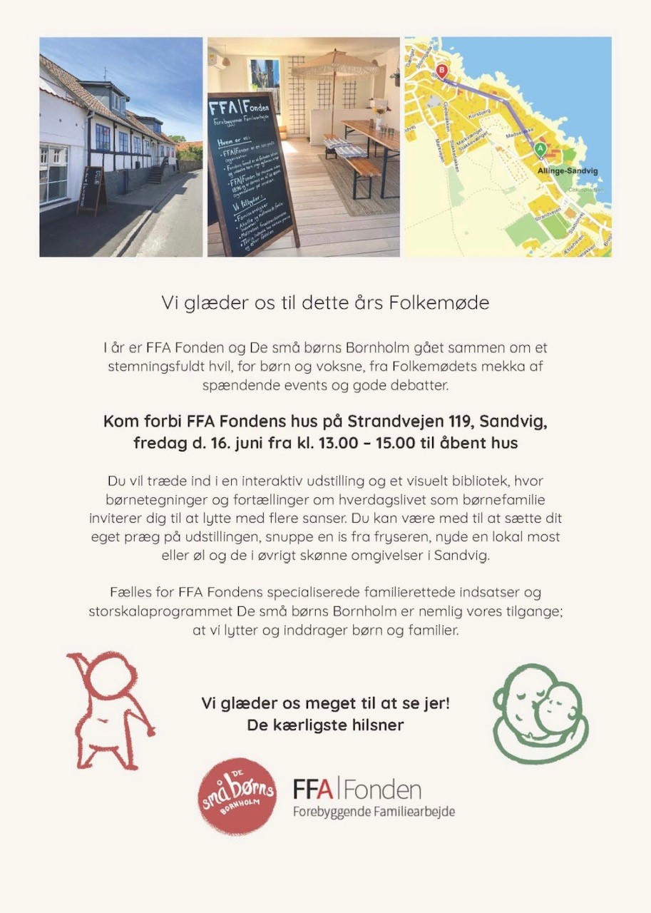 I 2023 gik FFA|Fonden sammen med De små børns Bornholm om en både hyggelig, relevant og stemningsfuld pause fredag d. 16. juni kl. 13 – 15. Vi var vilde med, at vi kunne finde hinanden og finde sammen om at vise et udsnit af børns og familiers hverdag, som de selv oplever den.